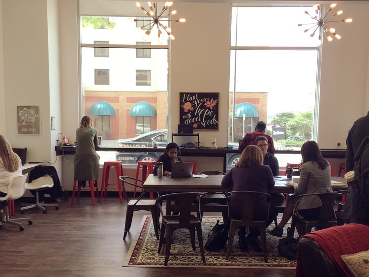 Are you looking for a creative place to work for a day? You will have business hours access, a table/bar spot in open floor space, secure high-speed WI-FI, unlimited Print Hub, and yummy coffee, tea, and snacks. This is 1 person, per 1 day.